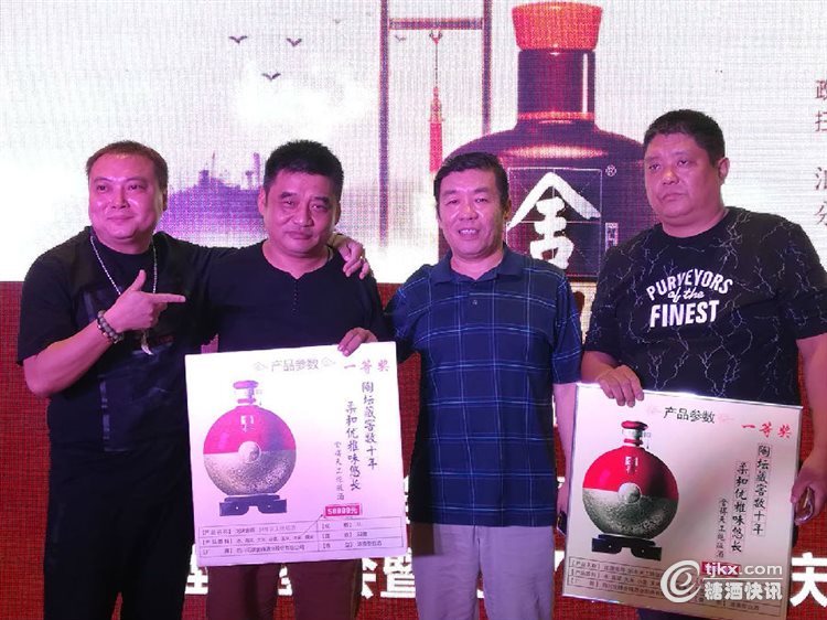 天津正泰酒業(yè)總經(jīng)理鄭煥杰與天津哈瓦那煙酒總經(jīng)理張健軍共同為獲得此項活動的一等獎得主頒發(fā)價值58888元的天宮沱牌舍得一壇