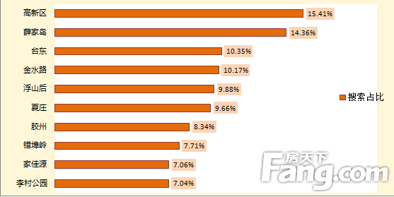 9月青島二手房市場商圈搜索情況顯示,9月商圈關(guān)注度TOP10在排名上變化不大,城陽區(qū)有三個商圈入圍前十,分別是位居首位的高新區(qū)商圈、位于第6位的夏莊商圈和位于第9位的家佳源商圈;同樣的,市北區(qū)也有三個商圈入圍前十,分別是位于第3、5、8位的臺東商圈、浮山后商圈和錯埠嶺商圈,城陽區(qū)和市北區(qū)可謂是商圈關(guān)注度大贏家;占居搜索第2位的是薛家島商圈;上月挺近前十的還有,李滄的金水路商圈、李村公園商圈以及膠州。