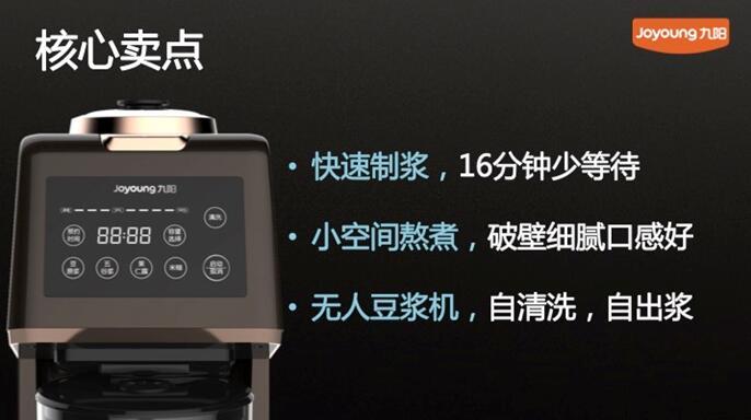 作為豆?jié){機(jī)發(fā)明者和豆?jié){機(jī)行業(yè)的開創(chuàng)者、領(lǐng)導(dǎo)者,一直以來,九陽穩(wěn)居豆?jié){機(jī)第一品牌。今年9月1日,九陽股份有限公司連續(xù)第九年榮獲“年度最具影響力小家電品牌”殊榮。今天,豆?jié){機(jī)之父又一次通過無人豆?jié){機(jī)開啟了豆?jié){機(jī)行業(yè)的新篇章,實(shí)現(xiàn)豆?jié){機(jī)新一代征程的進(jìn)化。未來,九陽將繼續(xù)倡導(dǎo)健康飲食生活方式,致力于產(chǎn)品和服務(wù)的持續(xù)創(chuàng)新,為客戶創(chuàng)造健康、便捷、高品質(zhì)的飲食解決方案。