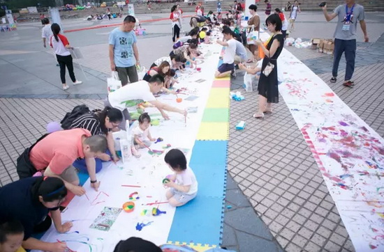 這項創(chuàng)意活動,是中國早教史上的創(chuàng)新,將早教課程的核心目標(biāo)與特點(diǎn)充分表達(dá),并實(shí)現(xiàn)了與參與家庭的深度互動。是中國早教機(jī)構(gòu)第一次動員100個城市的早教中心,10萬名以上的親子家庭參與,共同繪制10000米畫卷。畫卷將以“積木寶貝眼中的世界”為主題,讓孩子充分發(fā)揮他的想象力、創(chuàng)造力、專注力,在純潔的白布上,與爸爸媽媽一起繪制出五彩斑斕的色彩圖案和天馬行空的想法。