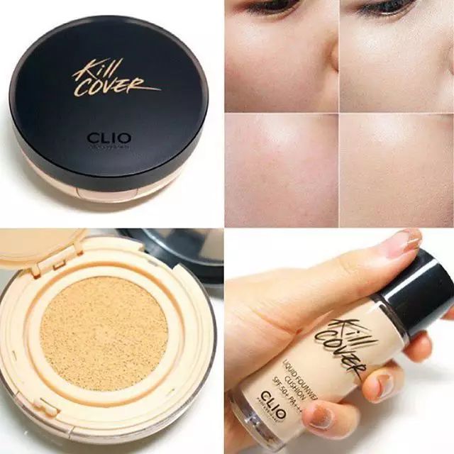 后來慢慢地,韓系品牌也注意到消費(fèi)者對(duì)氣墊粉底遮瑕度、持久性和控油力的要求,推出了水光感稍弱比較適合油皮和瑕疵皮使用的產(chǎn)品,比如Clio Kill Cover、Holika Holika Hard Cover等等。