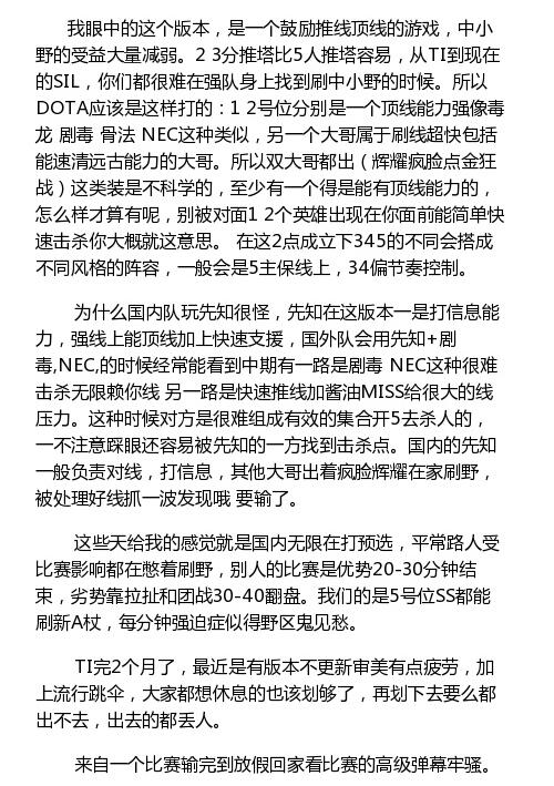 面對如此成績,不光是水友們大跌眼鏡,不少職業選手也表示該醒醒了,TI7季軍LFY的劍來!就發表長文,淺談了這次中國隊失利的原因,原文如下: