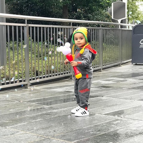 昨天,廣州恒大淘寶外援阿蘭帶著自己的妻兒一起來到了上海的迪士尼樂園。
