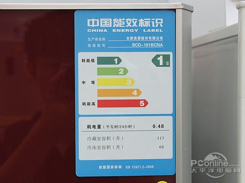 美菱181BCNA為國(guó)家一級(jí)能效產(chǎn)品,日耗電量為0.48度,機(jī)身總?cè)莘e為181L,其中冷藏室為113L,冷凍室為68L,機(jī)身尺寸543×580×1538mm。