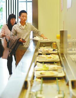 市民用完餐將餐盤放到傳送帶上 首席記者王鋒攝
