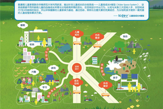 目前,酷漫居與第三方合作建立大數(shù)據(jù)平臺,“積累了大量數(shù)據(jù)后,將設(shè)計出更符合兒童未來健康成長需求的新產(chǎn)品”。與此同時,酷漫居還聯(lián)合華南師范大學(xué)、南京林業(yè)大學(xué),共同研發(fā)針對兒童成長的分房系統(tǒng)——兒童房成長K模型(Kidev Space System),該系統(tǒng)根據(jù)不同年齡段兒童的自身成長所需與父母培育所需的變化,為父母和孩子提供一套完善的兒童房整體解決方案。“一是為接下來的產(chǎn)品研發(fā)提供指導(dǎo),二是為門店銷售提供新的銷售工具,它跳出賣木材的邏輯,和消費者進(jìn)行更高層面也更有粘性的互動。”楊濤說。