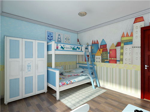 以淺藍色為背景,將家具融入家具,搭配小朋友們喜愛的俏皮可愛的城堡圖案,仿佛置身于神秘的過度。