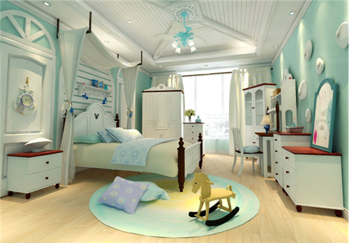 炎炎夏日也是與孩子分房的好時機,清涼、愜意的藍綠色的背景是助力分房最好的選擇之一,用對了顏色,就省了很多事兒。