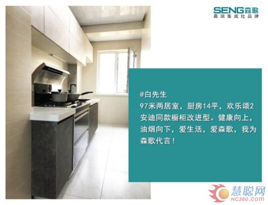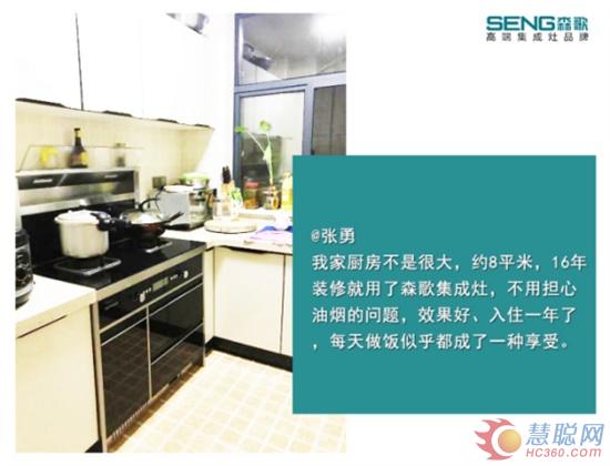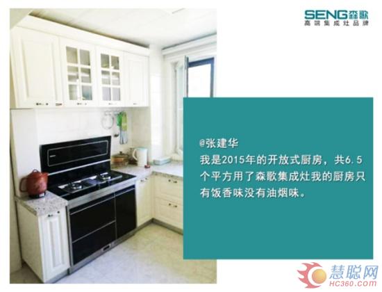 \u00A0\u00A0\u00A0\u00A0顧葉青:“一家三口的小屋87平,廚房是整個(gè)屋子里最滿(mǎn)意的,面積15個(gè)平方左右,設(shè)計(jì)的開(kāi)放式廚房肯定怕油煙。對(duì)比過(guò)后選擇了森歌集成灶,鄰居當(dāng)初來(lái)看我們裝修時(shí),說(shuō)我們年輕人不懂,說(shuō)什么一定要選掛式的油煙機(jī)。看過(guò)集成灶使用后的效果很驚訝,并沒(méi)有所謂的跑油煙。就連婆婆也糾正小姐妹們的偏見(jiàn),集成灶的好處只能說(shuō)誰(shuí)用誰(shuí)知道。”