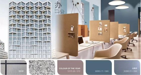 \u00A0\u00A0\u00A0\u00A0這個設計主題沿用了去年的牛仔藍,再加上中性色和藍綠色來配合,營造了輕松自然、無負擔的風格。在辦公建筑的運用中,不失正式穩重的配色,又使得空間更加明亮愉悅。