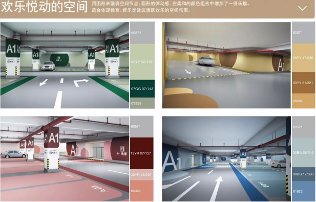 \u00A0\u00A0\u00A0\u00A02018年度色以及所延伸出的四種色盤,在建筑及室內設計和不同功能空間美學領域,各自擁有著非凡的魅力,在幫助設計師創造各種功能空間的同時,滿足使用者的真正需求。空間中的任何角落都應得到充分的重視,將對設計的思考和對人體驗的關愛融入空間的設計。2018年度色盤可運用在不同功能建筑地下車庫的地面、立面和頂面,柔和又不失活躍度的配色,通過圖形與色彩的組合設計塑造不同的空間氛圍。