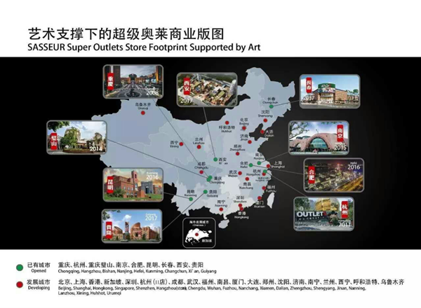 砂之船現(xiàn)已進(jìn)駐重慶、杭州、重慶璧山、南京、合肥、昆明、長(zhǎng)春、西安、貴陽(yáng),開(kāi)出9座奧萊。并計(jì)劃進(jìn)軍北京、上海、深圳、杭州2店、成都、武漢、福州、南昌、廈門(mén)、大連、鄭州、沈陽(yáng)、濟(jì)南、南寧、蘭州、西寧、呼和浩特、烏魯木齊、香港、新加坡。