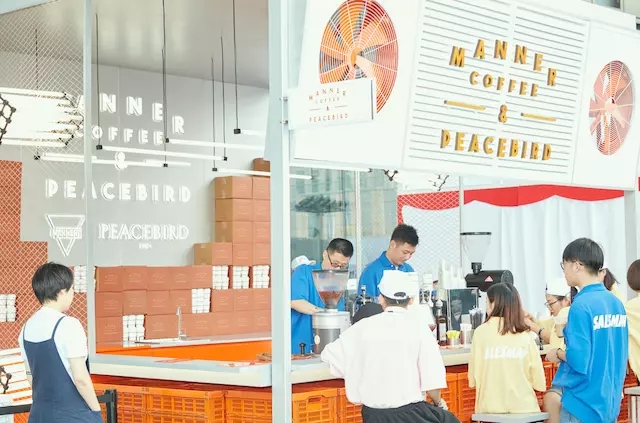 在展會(huì)的餐飲區(qū)域,其中一家咖啡店Manner Coffee&Peacebird也是由太平鳥主導(dǎo),邀請(qǐng)了上海人氣咖啡店Manner入駐。