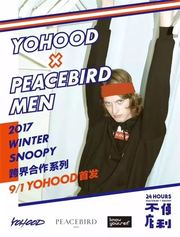 這是品牌第二年來到Y(jié)O’HOOD,去年我們?cè)鴪?bào)道過這個(gè)略顯“突兀”地出現(xiàn)在男性消費(fèi)者主導(dǎo)的潮流展會(huì)上的傳統(tǒng)服裝品牌,今年他們明顯增加了投入,從一個(gè)普通的參展商變成了“戰(zhàn)略合作伙伴”——來參加活動(dòng)的觀眾領(lǐng)到的那個(gè)限量發(fā)放的環(huán)保袋正面是Yoho的logo,背面就印著Peace Bird Men? 的字樣。
