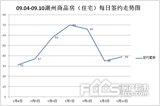 如下圖所示,09.04-09.10湖州商品房(住宅)共成交336套,日均成交48套。9月7日成交70套為本周成交套數(shù)之最。9月4日成交31套為本周成交套數(shù)最少。