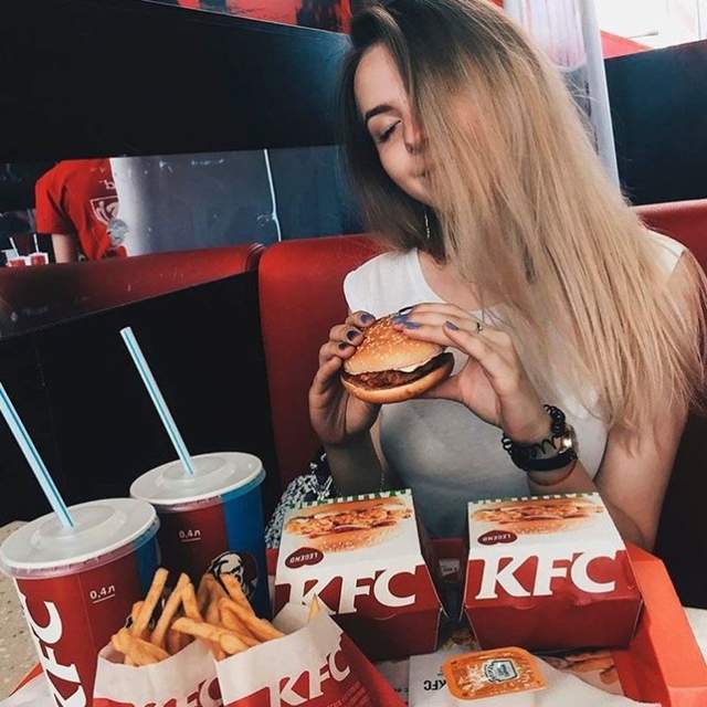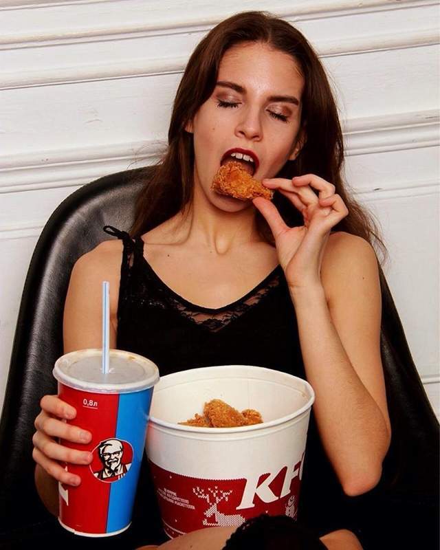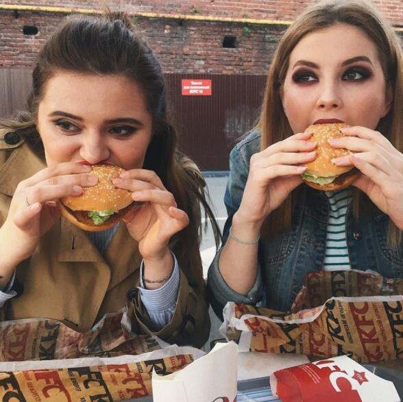 穿著十分時尚的俄羅斯美女們,拿著全家桶啃著雞自拍的畫面,真是讓人看餓了——我說的是肚子餓,不是饑渴,嗯。