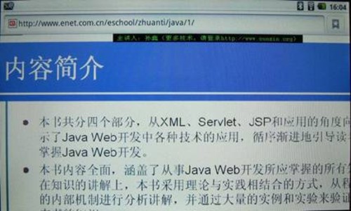 \u00A0\u00A0\u00A0 由于平時(shí)大家的工作和學(xué)習(xí)時(shí)間都比較緊張,因此往往沒(méi)有過(guò)多的業(yè)余時(shí)間去下載相應(yīng)的視頻教程學(xué)習(xí)充電,這個(gè)時(shí)候觀看網(wǎng)頁(yè)FLASH在線視頻教程就是一個(gè)比較高效的方法。下面筆者用VB730打開(kāi)了一個(gè)JAVA語(yǔ)言的網(wǎng)頁(yè)FLASH視頻教程,