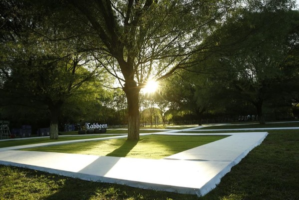活動(dòng)現(xiàn)場巧妙地利用園內(nèi)自然景觀進(jìn)行搭建,入口處長達(dá)30米的品牌歷史走廊,展示著Cabbeen成立20年特立獨(dú)行而又披荊斬棘的道路。舞臺、樂隊(duì)、觀眾席散布在林間,綠樹成為天然的華蓋,又以綿延彎曲的超長T臺貫穿起來,整體形成草書的“20/30”字樣。