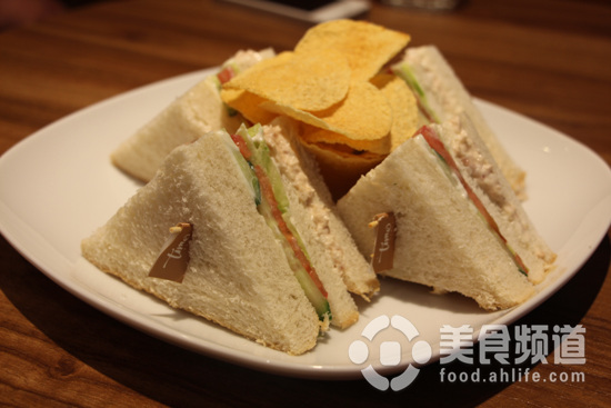 三明治中內(nèi)涵豐富,有黃瓜、西紅柿、火腿、培根、奶酪和沙拉醬,切成大小合適的三角塊,上面再配上薯片。吃一口松軟又營(yíng)養(yǎng)的三明治,再吃一口嘎嘣脆的薯片,別有一番風(fēng)味。兩款松餅,一款松餅上加的是冰淇淋球,另一款松餅上加了滿滿的水果(草莓、香蕉和菠蘿)再澆上酸奶,光是看著就覺(jué)得誘 惑至極!現(xiàn)烤出來(lái)的松餅,馬上吃一口,可口而膨松,再來(lái)一杯咖啡,太完美了!
