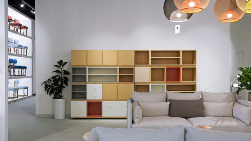 ??無粉飾的場景和繁復的硬裝,以高亮白為底色,深圳萬象天地店沿用了上海萬象城店2.0的零售陳列方式,將同系列單品懸掛上墻進行展示,突出每一件產(chǎn)品的細節(jié),并通過組合套系創(chuàng)造家庭的全場景空間,包括客廳、餐廳、書房、臥室等功能區(qū)。