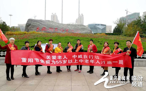 黃河新聞網(wǎng)臨汾訊 在一年一度的重陽節(jié)來臨之際,10月13日,第三屆“關(guān)愛老人中威在行動”公益活動正式啟動,臨汾市共有12家“中威電氣石養(yǎng)生館”參加本屆送健康免費體驗活動,他們將為全市55歲以上中老年朋友奉上免費汗蒸體驗服務(wù)。