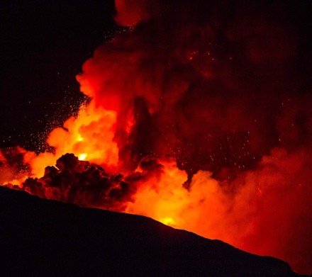 △國際空間站拍攝到的新燃岳火山噴發(fā)畫面
