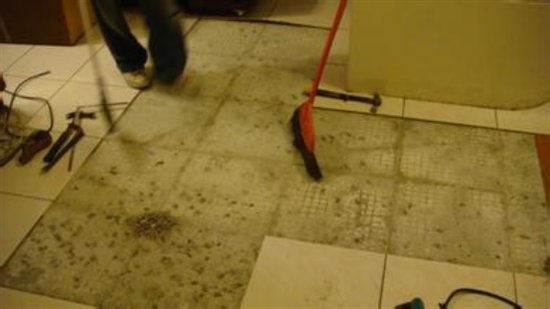 \u00A0 \u00A0 2、把粘在瓷磚邊上的水泥砂漿全部刮掉。處理磚下的水泥層,刨掉1-2厘米,清理干凈。