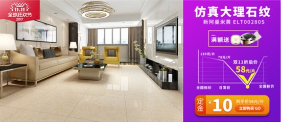 \u00A0 \u00A0 雙十一期間,眾多歐神諾百搭瓷磚單品如木紋瓷磚、大理石瓷磚等還可以使用(B2C)定金券購(gòu)買,10元定金券省20元,20元定金券省40元。眾多瓷磚單品線上線下同價(jià),為消費(fèi)者帶來了全面的實(shí)惠。
