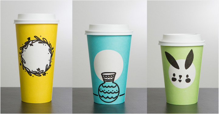 不只是圣誕季,星巴克每年都會(huì)在不同的節(jié)假日推出富有季節(jié)特色的限量紙杯。比如今年 3 月,星巴克就換上了具有春天氣息的藍(lán)色、黃色和綠色紙杯。