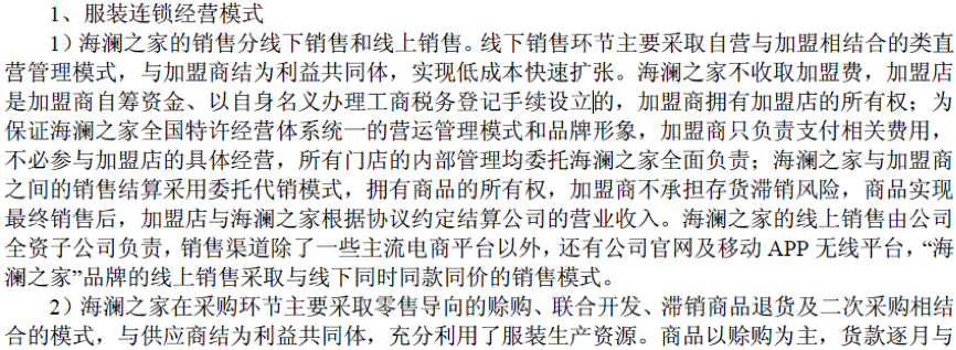 對于海瀾之家的經(jīng)營模式,其年報里如此交代: