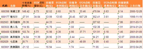 服裝上市公司十年數(shù)據(jù)對(duì)比: