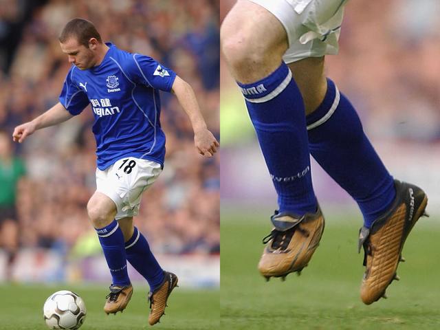 在17歲生日前5天,魯尼用一腳技驚四座的遠射終結了阿森納30場聯賽不敗紀錄,這是他的英超首球也是魯尼登上世界足壇舞臺的開端。這場比賽中他穿著了一雙金色的umbro XAI II足球鞋,是否暗示他即將開啟金色的職業生涯?