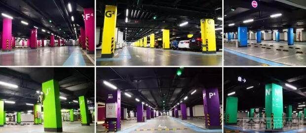地下停車場按不同色彩主題分區(qū)標(biāo)識,既方便車主記憶尋車,又帶來了更加繽紛多彩的視覺體驗。