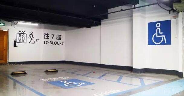 為照顧行動不便的客人,祈福繽紛世界地下停車場在每個垂直交通位置預(yù)留了無障礙車位,下車就可以乘坐電梯。
