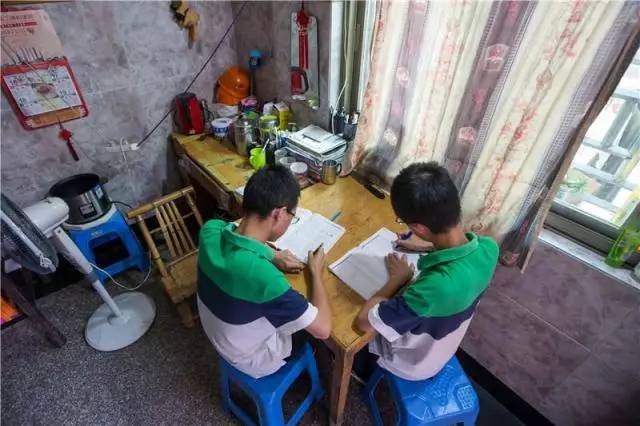 屋內(nèi)沒有衛(wèi)生間,也沒有像樣的家具。進(jìn)門靠窗的地方,有一張兩尺寬的小方桌,這是兩兄弟平時學(xué)習(xí)的地方。