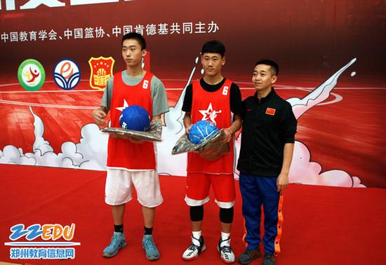 初、高中組三分球比賽冠軍得主上臺領(lǐng)獎。
