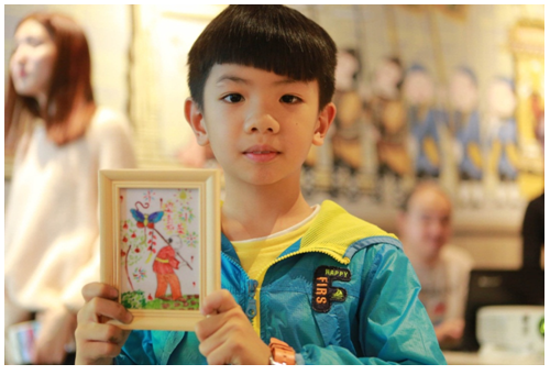 “老師,這畫上的是什么?顏色好像油畫呢……”\u00A0看多了教科書上精致的現(xiàn)代插畫,小朋友們對畫上穿著古色古香的小人兒十分好奇。在老師的指導(dǎo)下,現(xiàn)場小朋友們興奮地拿著水彩筆,小心翼翼的在材質(zhì)獨特的通草紙上涂涂畫畫起來,生動的舞獅、搞怪的大頭佛在他們的筆下變幻斑斕的色彩,生動了起來。“很高興有機(jī)會能向孩子們展示通草畫的文化與技藝,”蘇昕表示,“希望以后還能舉辦更多類似的活動讓這些廣府的非遺文化煥發(fā)光彩。”