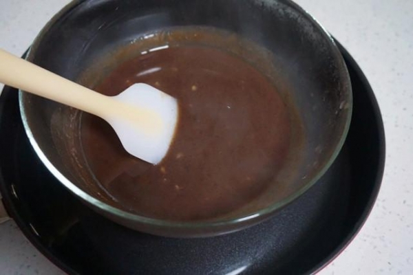 同樣隔冷水降溫,并攪拌,溫?zé)岬?0度即可。