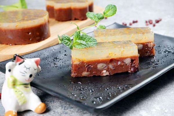 5、放入模具后,常溫下放置1小時,就會凝固成水晶桂花羹了,不要入冰箱。