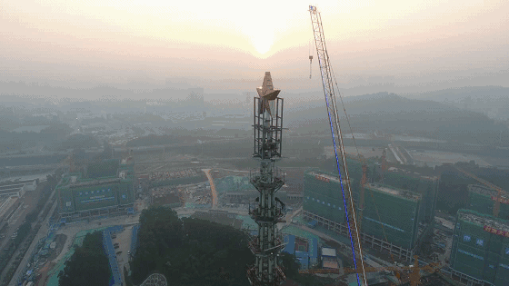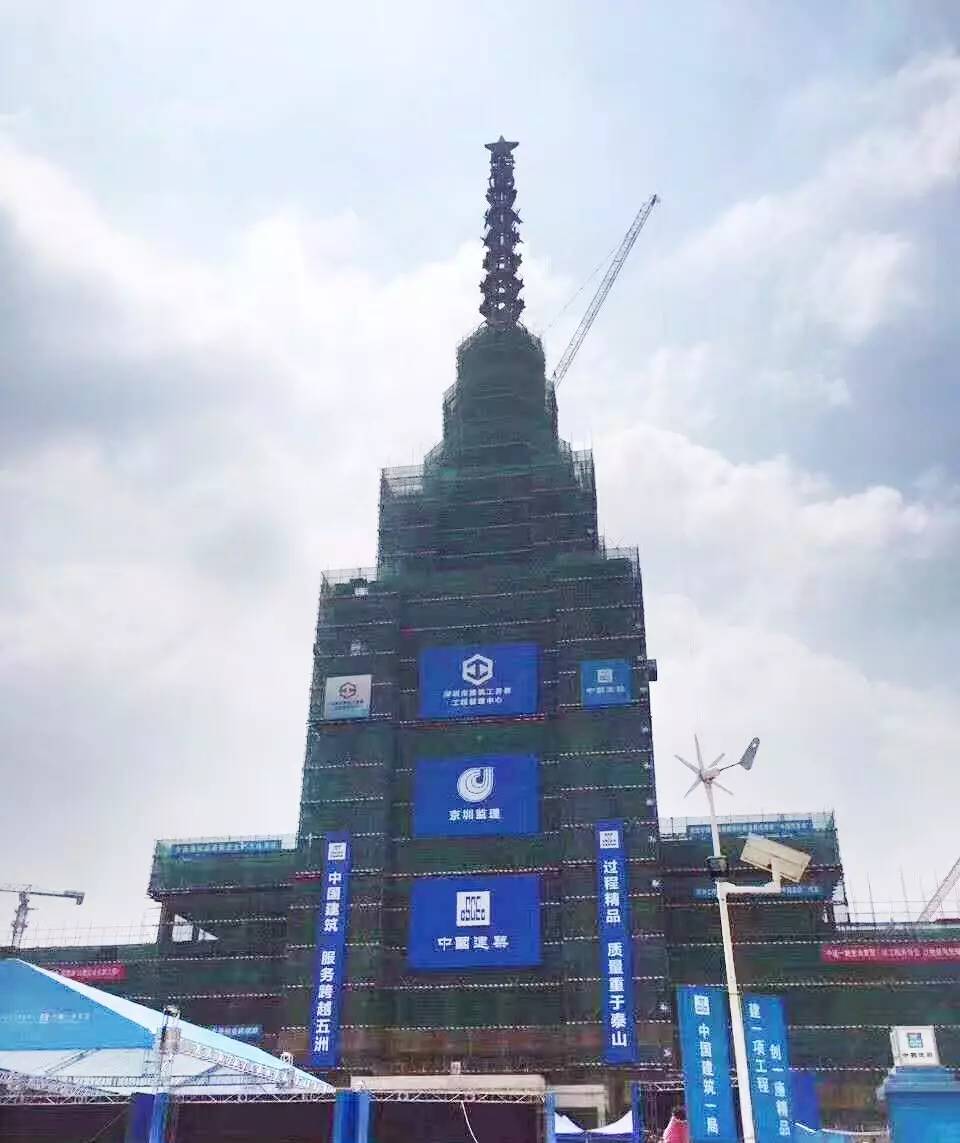中建一局建設(shè)的深圳北理莫斯科大學(xué)項(xiàng)目位于深圳市龍崗區(qū),總建筑面積29.7萬平方米,主教學(xué)樓主體鋼結(jié)構(gòu)塔尖完成吊裝后高達(dá)156米,被稱為“北莫之星”,預(yù)計(jì)2018年底竣工。