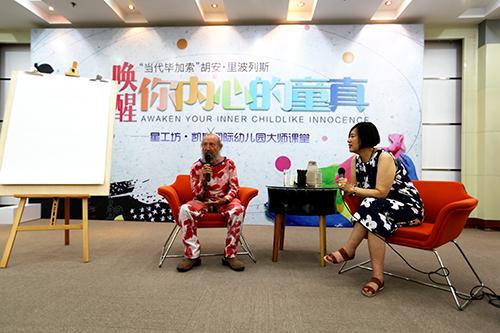 齊魯網(wǎng)濟(jì)南6月15日訊(記者 星工坊)6月14日,西班牙藝術(shù)大師——“當(dāng)代畢加索”胡安·里波列斯來(lái)到星工坊·飛爾姆樂(lè)園,與百余名孩子進(jìn)行了一場(chǎng)別開(kāi)生面的藝術(shù)交流活動(dòng)。“起步與世界同步”的星工坊·飛爾姆樂(lè)園致力于為孩子們創(chuàng)造可持續(xù)發(fā)展的文化產(chǎn)業(yè)生態(tài)系統(tǒng)。胡安·里波列斯這位世界級(jí)藝術(shù)大師的到來(lái),標(biāo)志著星工坊少兒綜合素質(zhì)提升項(xiàng)目——“大師講堂”的正式開(kāi)啟。