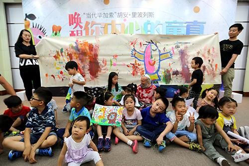 胡安大師與孩子們現(xiàn)場(chǎng)共同繪畫(huà)
