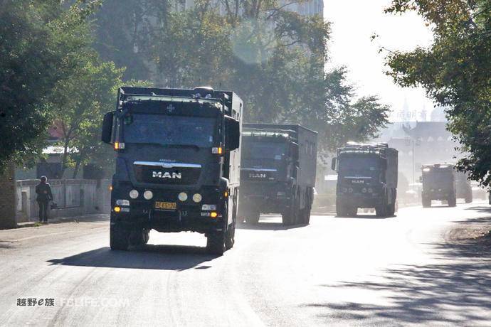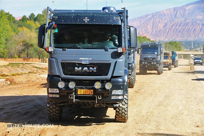 出了縣城,薄薄的霧氣還沒(méi)有散去,整條車(chē)隊(duì)看上去就像是在槍林彈雨的煙霧中行進(jìn)的一對(duì)軍車(chē),霸氣威武。據(jù)阿莫迪羅工作人員介紹,由于德國(guó)對(duì)中國(guó)軍事禁售,所以MAN卡車(chē)如果想進(jìn)入中國(guó),是不能以軍車(chē)引入的,只能以民用方式引入。