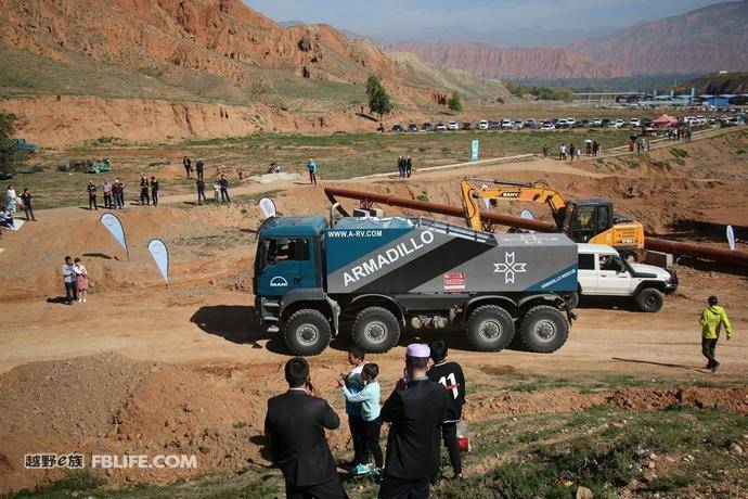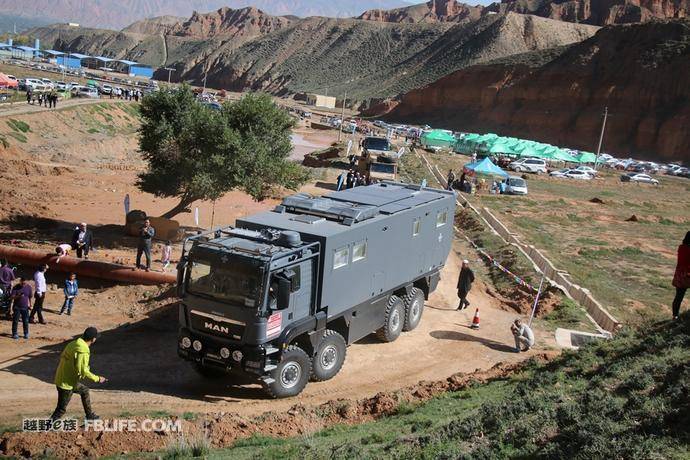 在進(jìn)入紅谷越野場(chǎng)地的路上有一個(gè)由土堆堆起來(lái)的駝峰,這些越野房車(chē)由于軸距和車(chē)身太長(zhǎng),造成了有些車(chē)輪離地空轉(zhuǎn)的情況。這時(shí)候越野房車(chē)的性能就被發(fā)揮出來(lái)了,掛上差速鎖,這些駝峰便可以輕松通過(guò),毫不費(fèi)力。