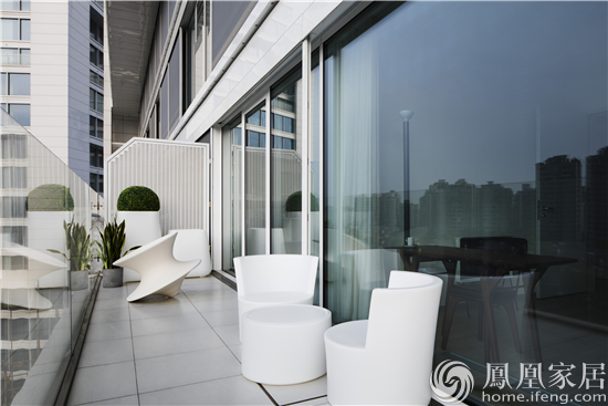 露臺(tái)搭配發(fā)光座椅與花器,襯托浪漫溫馨的氛圍。或云淡風(fēng)輕,天藍(lán)海闊,或華燈初上,星空萬(wàn)里。業(yè)主的繽紛生活在這一隅得以延伸。設(shè)計(jì)師方磊坦言:“每個(gè)家都有獨(dú)屬于自己的情感流轉(zhuǎn),家的設(shè)計(jì)不僅要空間形體之美,更需包容生活多樣性體驗(yàn)。中鷹黑森林秦公館從感官到心理都讓人完整地體會(huì)空間氣質(zhì)所營(yíng)造的美學(xué)品位。我相信縱然歷經(jīng)歲月沉淀,這個(gè)既純粹又簡(jiǎn)約的空間仍能與業(yè)主夫婦進(jìn)行自由而寧?kù)o的精神對(duì)話。”