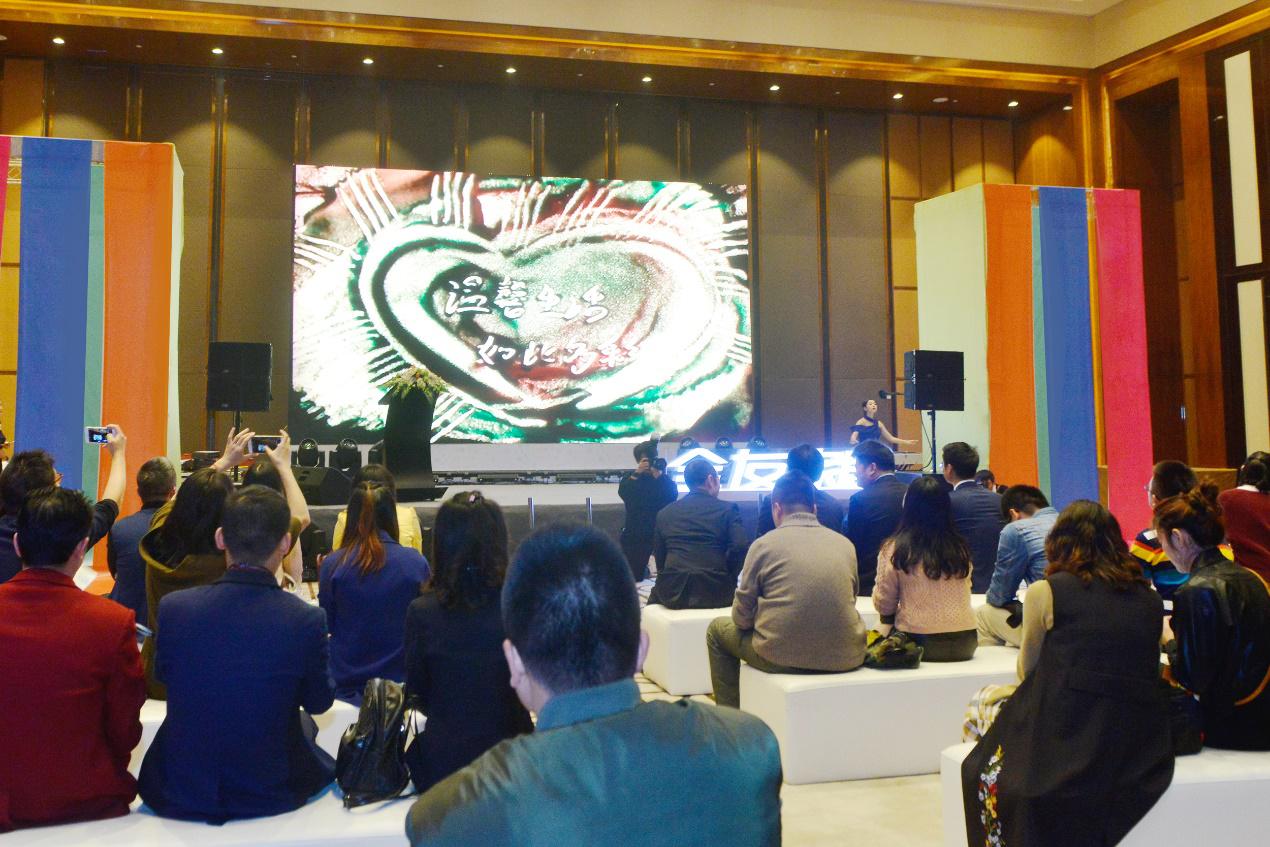 簽約儀式前,創(chuàng)意十足的簽到方式與沙畫表演贏得參會人員點贊。