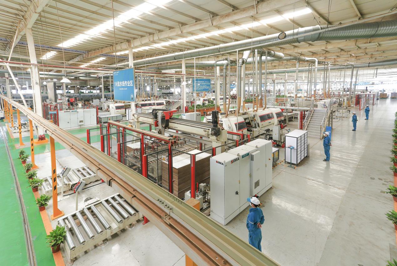 隨后,督查組一行來(lái)到定制衣柜廠和展廳進(jìn)行考察。在定制衣柜廠,督查組一行詳細(xì)了解了德國(guó)IMA柔性全自動(dòng)封邊生產(chǎn)線和德國(guó)Priess Horstman排鉆線等國(guó)際一流設(shè)備的運(yùn)行情況,查看了車間的環(huán)保設(shè)備配備和現(xiàn)場(chǎng)環(huán)境治理等情況。在展廳,督查組一行詳細(xì)了解了公司各種產(chǎn)品的材質(zhì)和展廳材料使用等情況。在了解到公司產(chǎn)品都是使用環(huán)保材質(zhì)生產(chǎn)后,督察組一行對(duì)公司在環(huán)保工作方面所作的努力表示贊揚(yáng)。