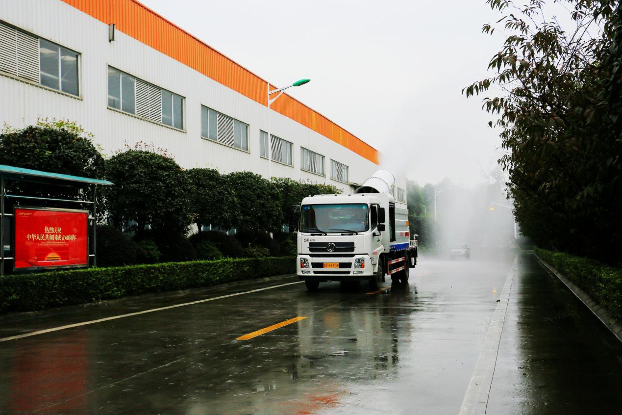 在督查過(guò)程中,正在噴霧作業(yè)的多功能抑塵車給督查組一行留下了深刻的印象。在得知公司為做好環(huán)保工作,斥資購(gòu)買了多臺(tái)多功能抑塵車,通過(guò)灑水、噴霧等方式對(duì)園區(qū)進(jìn)行除塵降塵工作后,對(duì)公司積極采取有效措施進(jìn)行環(huán)境治理表示贊賞。