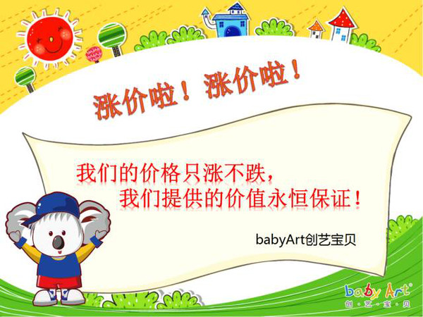創(chuàng)藝寶貝甌北中心將于2016年1月31日起統(tǒng)一上調(diào)課程價格!2016年2月1日前生效的合同均不受影響!
