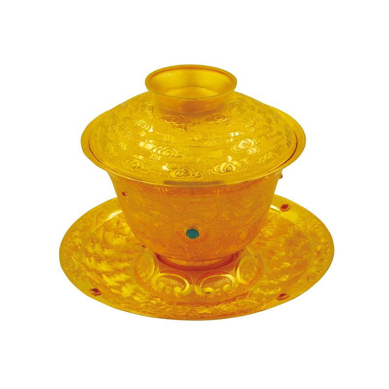 老鳳祥首飾文化節(jié)首次展出的“御用鑲寶金餐具”,這是其中的茶杯之一。